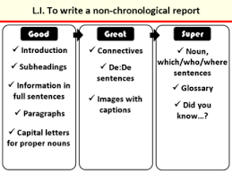 This week in our writing lessons you will be looking at the features of a non-chronological report. Can you remember them?